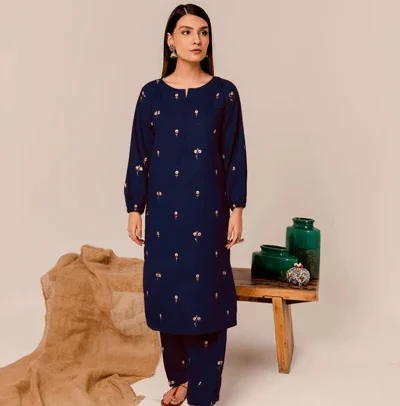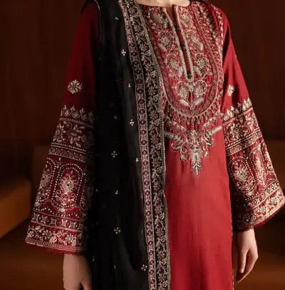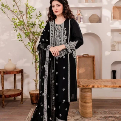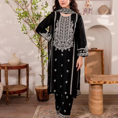 Elevate your winter wardrobe with the Misha Black 2-Piece Embroidered Lawn Dress by Zilly Fashion. Featuring intricate floral embroidery on the neckline and sleeves, paired with coordinating bottoms, this ensemble blends artisanal craftsmanship with timeless elegance for festive gatherings, casual outings, or semi-formal occasions.