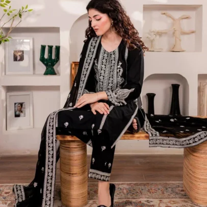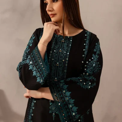 Elevate your winter wardrobe with the Misha Black 2-Piece Embroidered Lawn Dress by Zilly Fashion. Featuring intricate floral embroidery on the neckline and sleeves, paired with coordinating bottoms, this ensemble blends artisanal craftsmanship with timeless elegance for festive gatherings, casual outings, or semi-formal occasions.