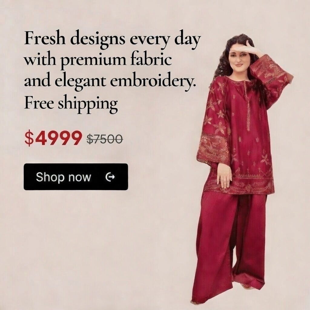 An elegant ready-to-wear two-piece lawn outfit featuring refined embroidery and a comfortable stitched fit. Designed for effortless everyday grace.