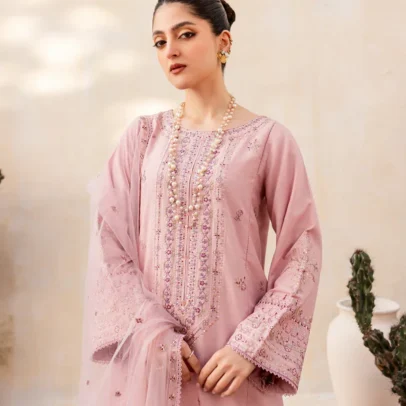 Elevate your wardrobe with the Albus Percival 3-Piece Embroidered Lawn Outfit by Zilly Fashion. Featuring a delicately embroidered shirt, matching trousers, and coordinating dupatta, this lightweight lawn set combines comfort and timeless elegance.