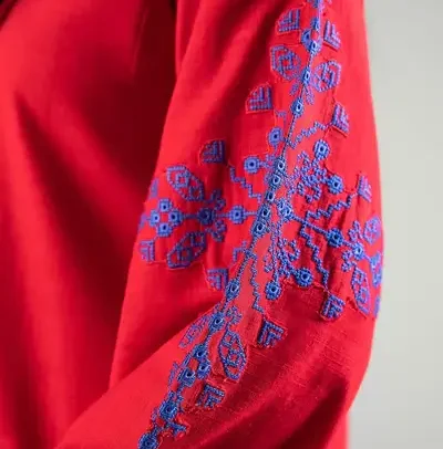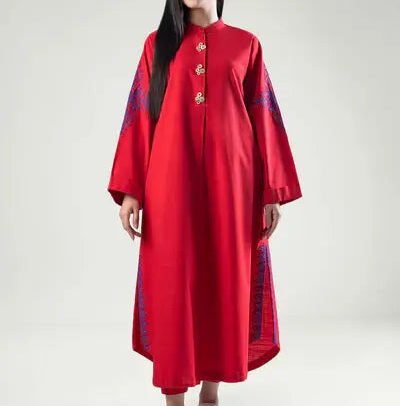 Design Features: Intricate hand-inspired floral embroidery, detailed borders on hemline and sleeves