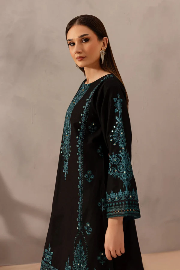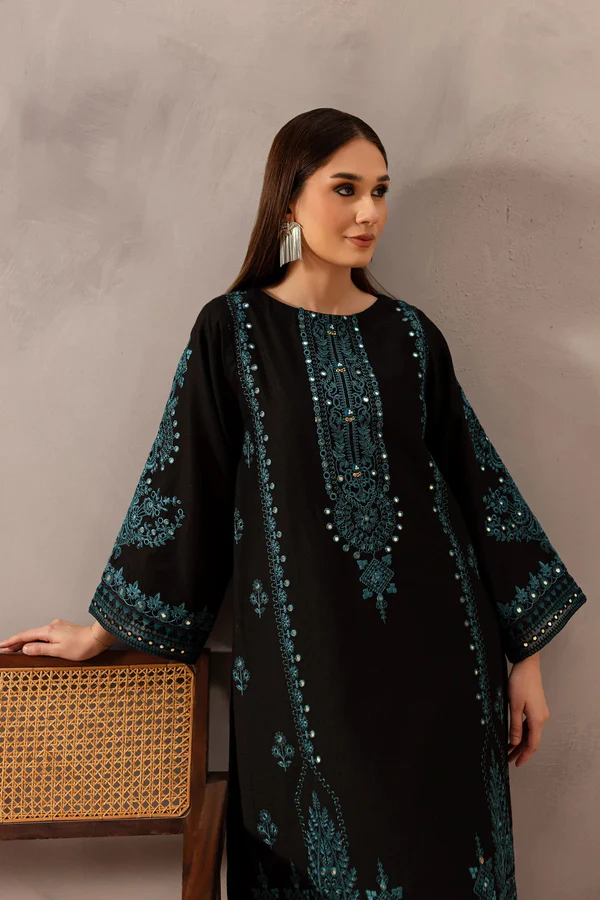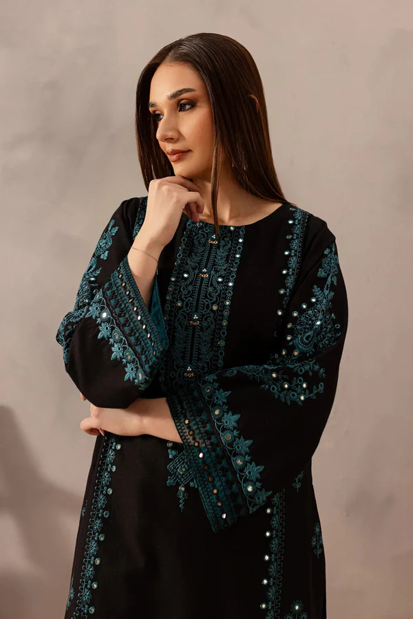 Elevate your winter wardrobe with the Misha Black 2-Piece Embroidered Lawn Dress by Zilly Fashion. Featuring intricate floral embroidery on the neckline and sleeves, paired with coordinating bottoms, this ensemble blends artisanal craftsmanship with timeless elegance for festive gatherings, casual outings, or semi-formal occasions.