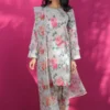 Step out in style with the Pink Punch 3-Piece Embroidered Lawn Dress. The long paneled shirt, crafted from premium Pima Lawn in ultra-pink, is adorned with intricate embroidery in contrasting shimmery tones, enhanced with sequins, tilla, and organza patchwork for a luxurious finish.